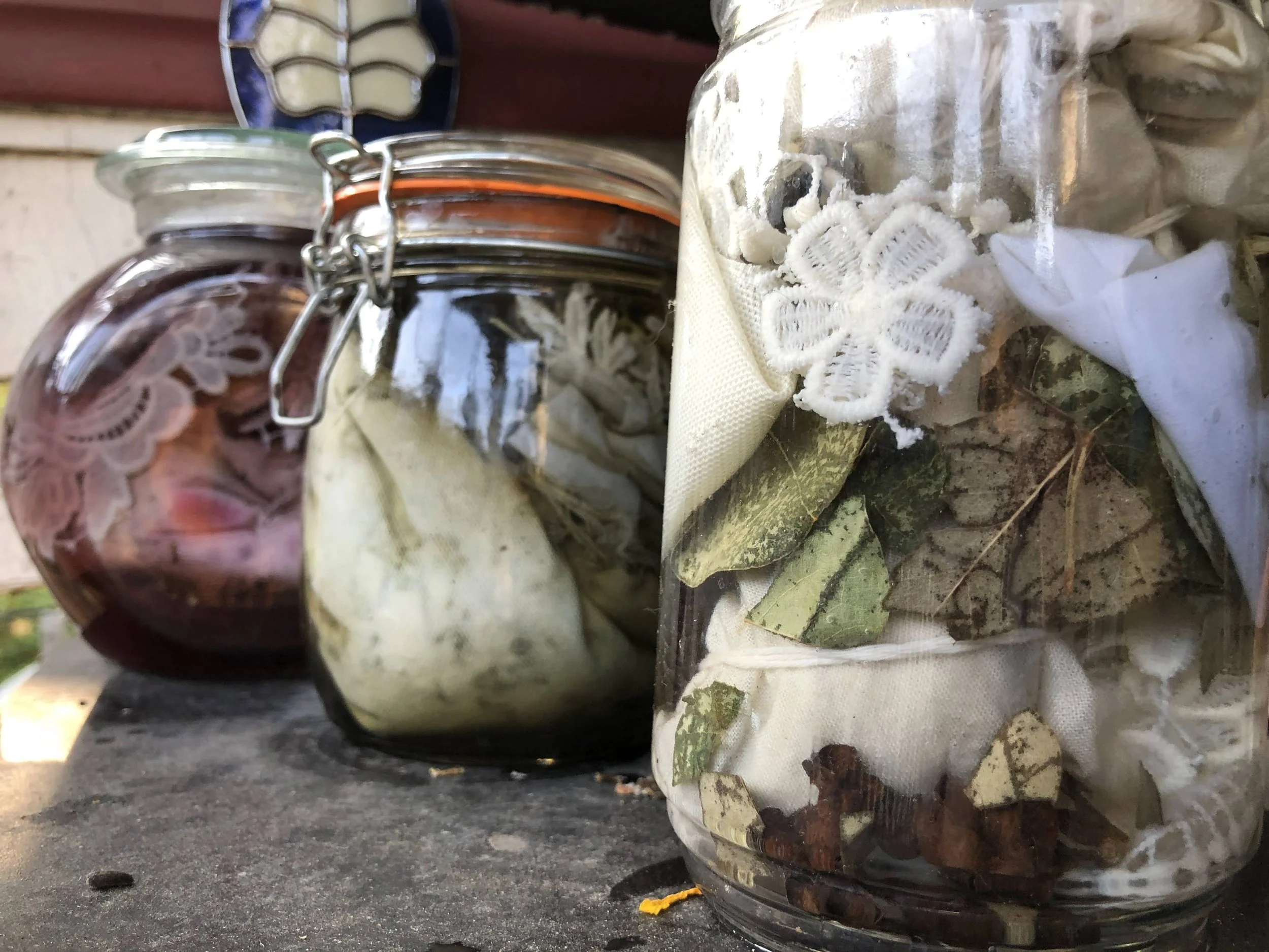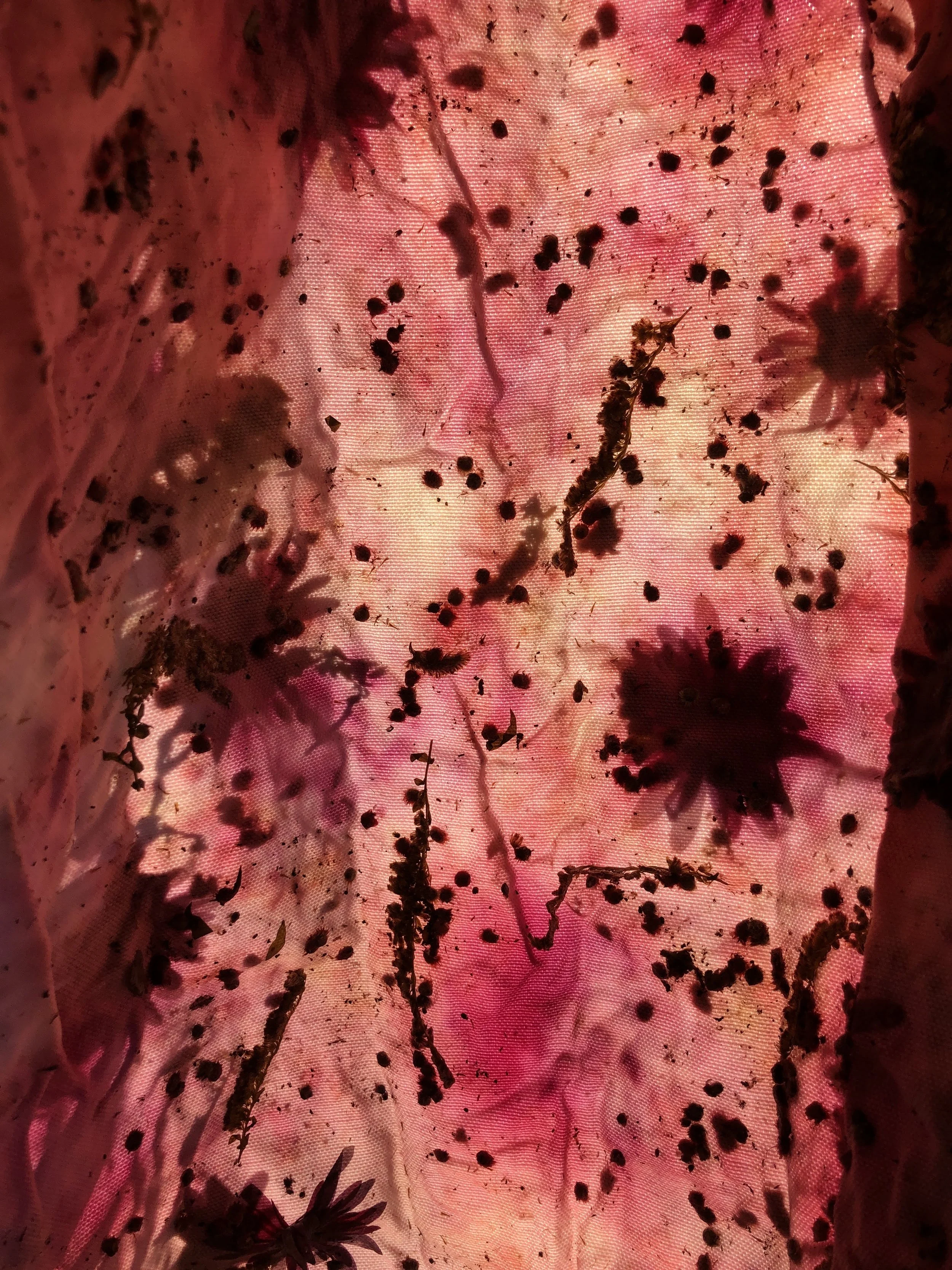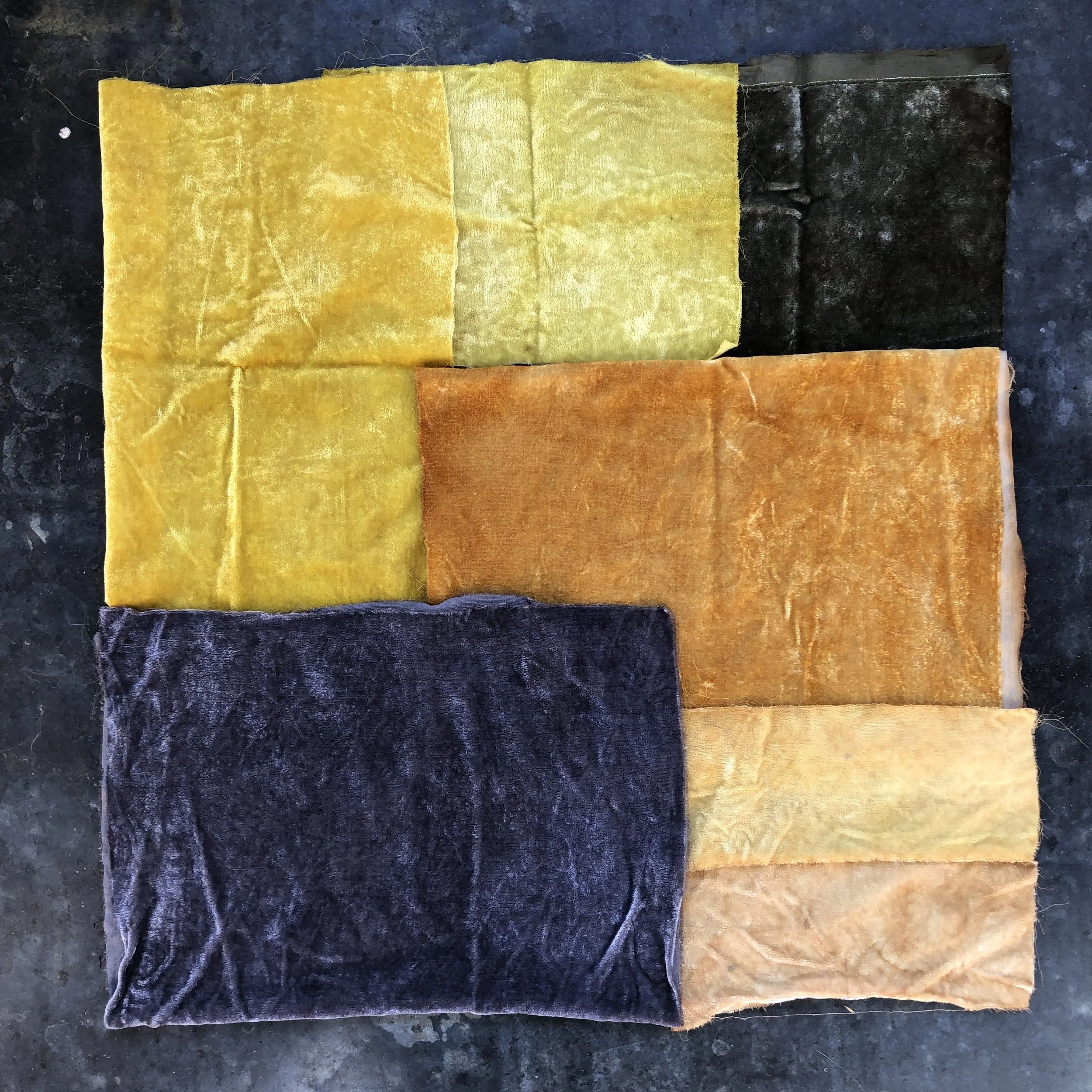 Inspired by my local surroundings, the magic of chemistry, my natural dye practice is based in experimentation and research sampling. I’m most interested in exploring what range of colours and markings can be achieved through varying techniques of material application and dyeing, including stove top, solar, and over dyeing.