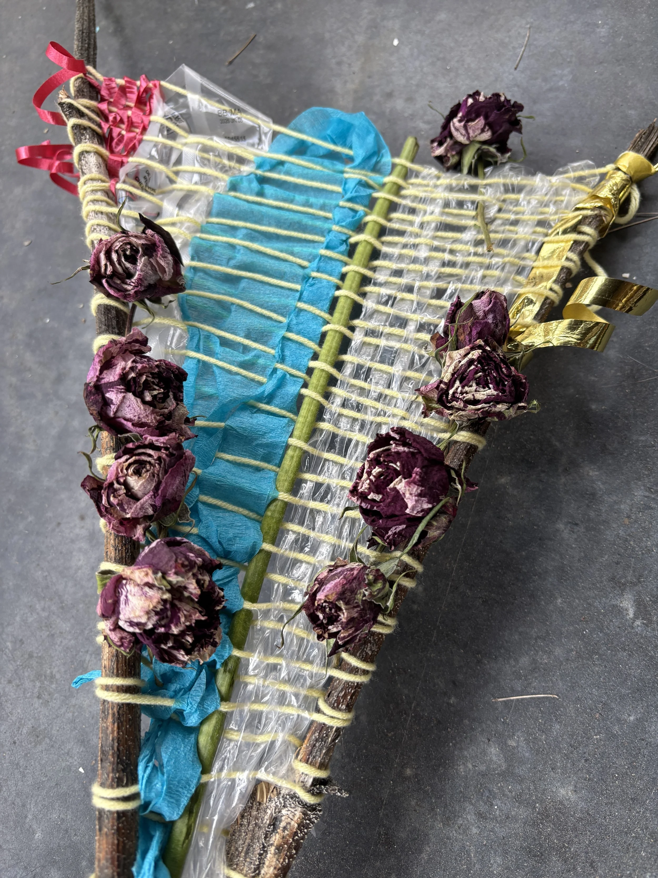 Participants are invited to learn how to build their own portable handloom frame out of sticks and twigs, and practice weaving using a mix of natural and recycled materials.