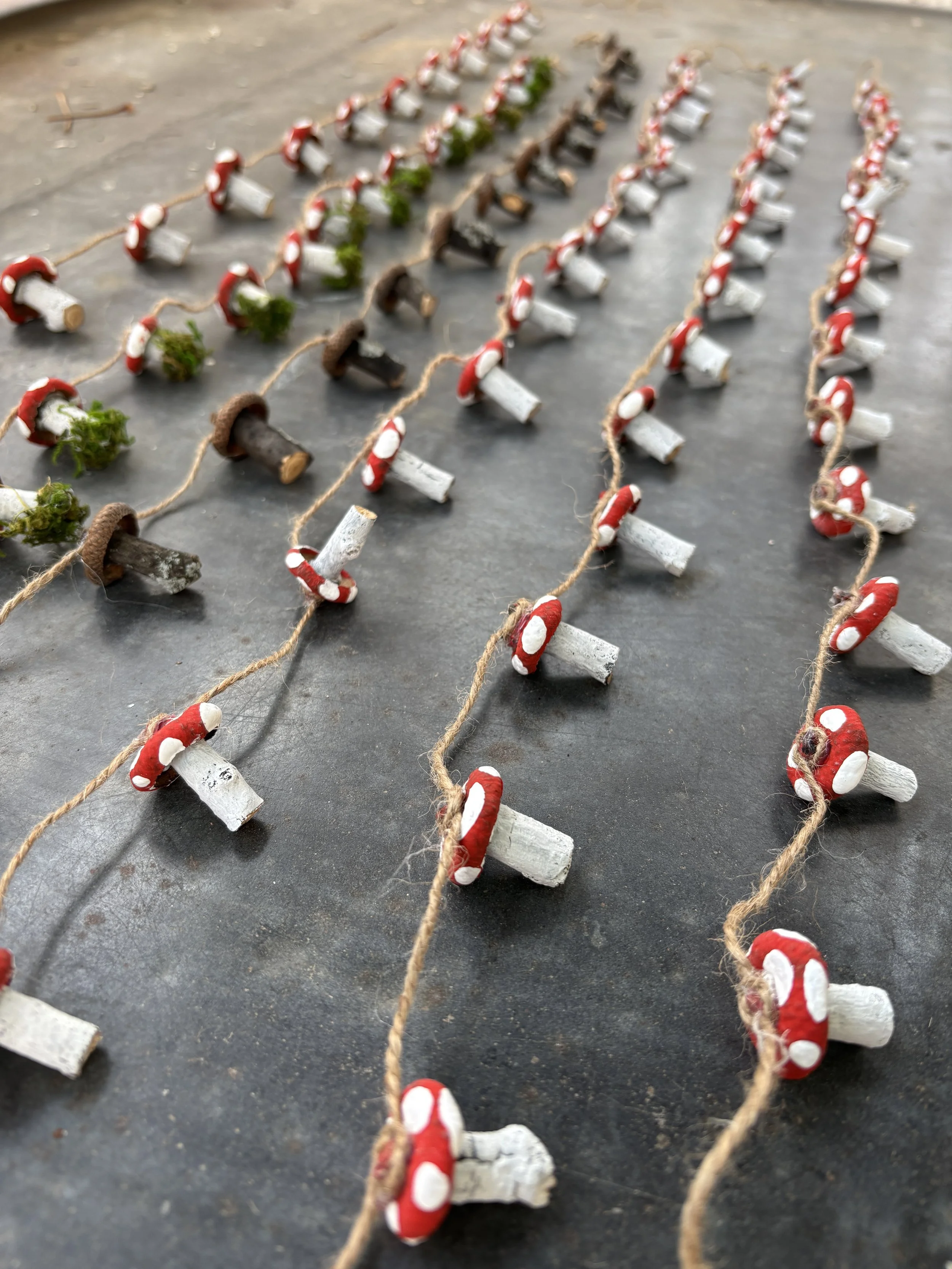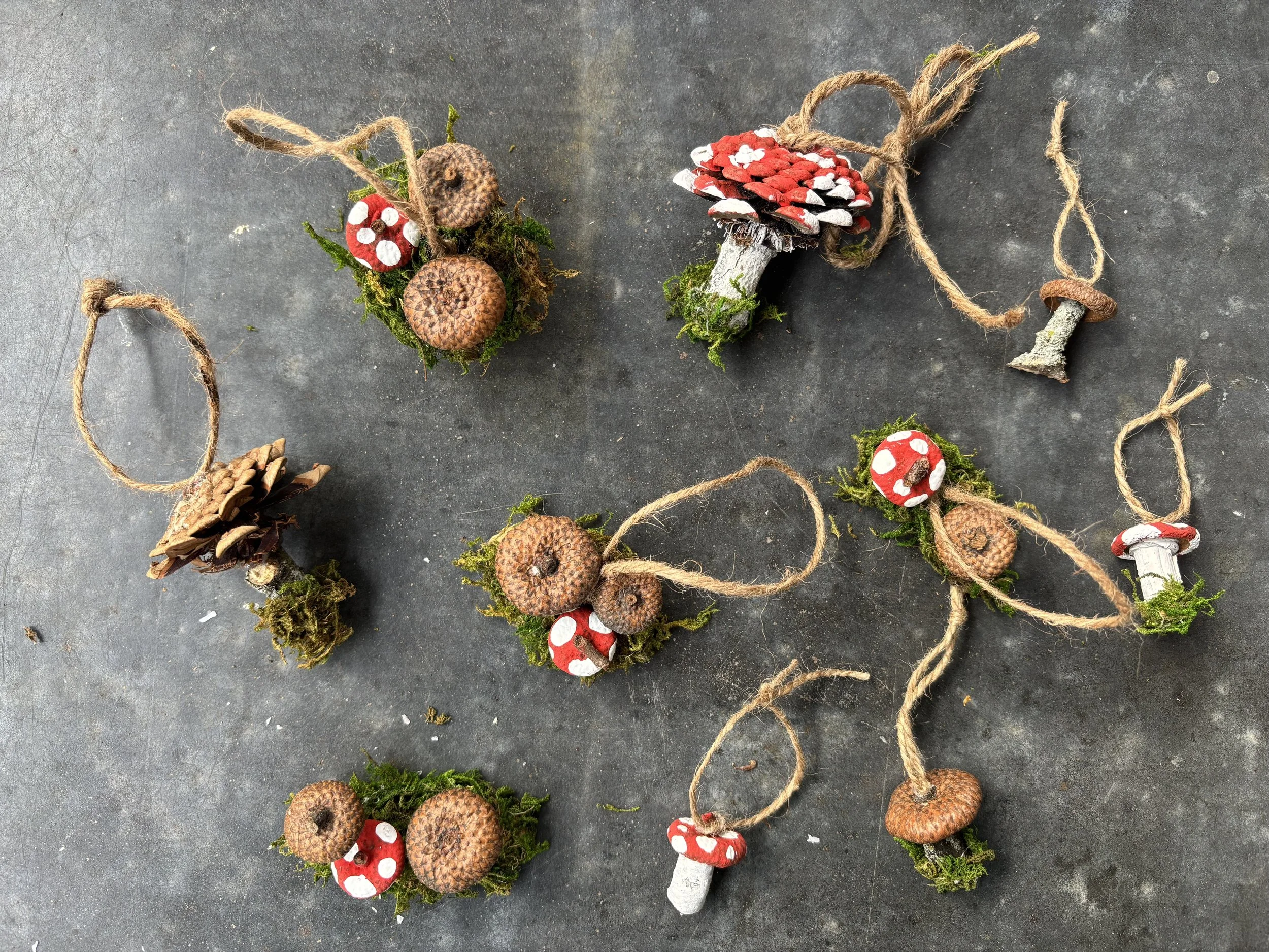 Create whimsical mushroom decor such as ornaments, garlands, and centrepieces, using various woodland materials.